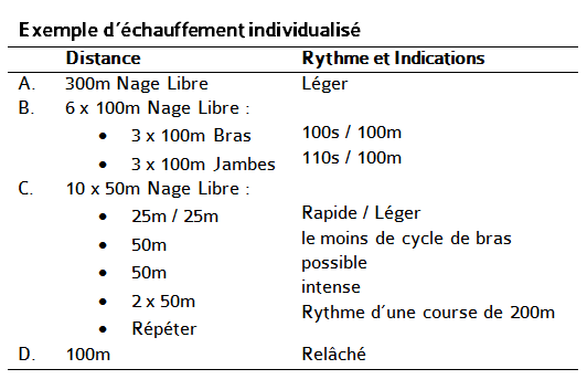 Ces résultats ouvrent certaines perspectives, même il sera peut-être difficile de mettre en place un tel protocole avant une compétition. Cependant, plus de recherches devraient être menées sur l’échauffement. Les auteurs de cet article proposent un travail sur un échauffement combinant à la fois un travail aquatique spécifique et un travail musculaire en force.