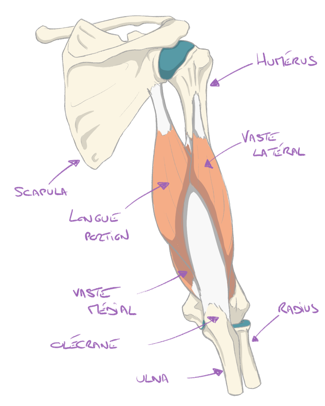 Il faut noter également que de nombreuses variantes d’exercices ne sont pas étudiées ce qui rend leur utilisation hasardeuse car il n’est pas possible de deviner si une variante permettra d’obtenir de meilleurs résultats, à moins de prendre le temps de la tester et de, peut-être, perdre son temps… C’est le cas avec la position des avants-bras dans les extensions à la poulie haute, et son impact sur le recrutement du triceps brachial. Le triceps brachial est un muscle du bras composé de 3 régions : la portion longue qui est bi-articulaire et les vastes médial et latéral qui sont mono-articulaires. Ces 3 chefs s’insèrent tous sur l’ulna, au niveau de l’olécrane et agissent donc comme les principaux extenseurs du coude. La plupart du temps, l’exercice d’extension du coude à la poulie haute se fait avec une prise en pronation. Pourtant, certains pratiquants utilisent une prise en supination. Sachant que le mouvement de l’avant-bras en pronation/supination implique principalement le pivotement du radius, et que l’ulna ne change pas de position, est-ce qu’il aura un impact sur le développement du triceps brachial et de ses chefs ?