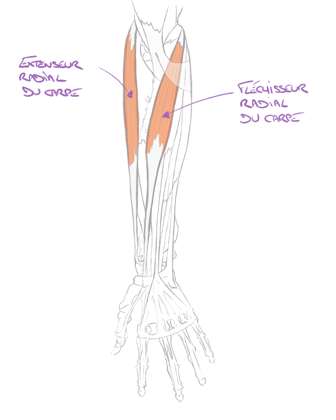 Lorsque des sangles sont utilisées et fixées au niveau de l’avant-bras, il n’y a pas de couple en flexion ou en extension au niveau du poignet, et par conséquent, pas de recrutement des muscles fléchisseurs ou extenseurs radial du carpe, ce qui expliquerait le recrutement similaire du triceps quelle que soit la position de l’avant-bras.