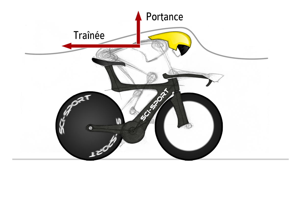 En cyclisme, différentes forces s’opposent à l’avancement du cycliste et de sa bicyclette et limitent sa vitesse de déplacement. À vitesse élevée (> 40 km·h-1), la traînée aérodynamique est la plus importante de toutes ces forces.41 Pour se représenter son importance, il faut savoir que 90% de la puissance produite par un cycliste sert à vaincre cette résistance. 7,16,38,41 L’aérodynamisme est une problématique de premier plan pour la recherche en cyclisme, l’objectif principal étant d’améliorer les performances.