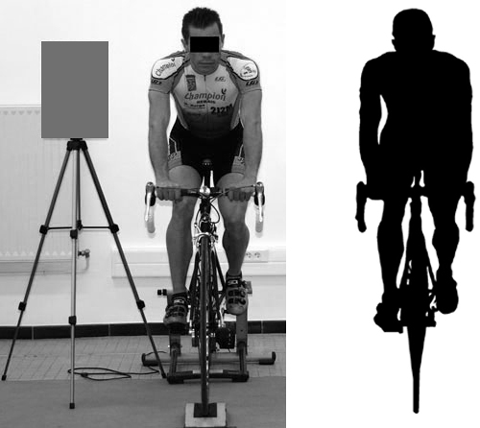 Cette méthode présente néanmoins quelques inconvénients qui peuvent être résolus.9,12 Pour une mesure correcte, le découpage doit être précis, et c’est une opération assez fastidieuse qui peut prendre entre 5 et 6 minutes par photographie. De plus, la taille d’impression standard des photographies ne permet pas de découper avec une précision suffisante la bicyclette. La mesure de l’aire frontale projetée est donc limitée à celle du corps du cycliste (l’aire frontale d’une bicyclette de route classique est généralement de 0.11 m2). Pour contourner ce problème, il suffirait d’imprimer les photographies dans un plus grand format.