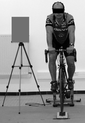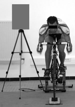 - L’appareil photographique doit être exactement en face du cycliste et placé à hauteur du guidon. Une déviation angulaire de 10° pourrait induire une diminution de 7.5% de Ap.