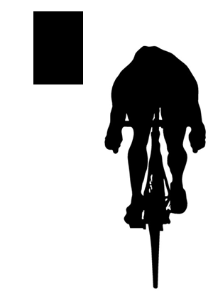 L’aire frontale projetée représente la portion du corps qui peut être vue par un observateur placé exactement en face de ce corps (Fig. 7). Elle est dépendante de la taille et de la masse corporelle du cycliste, de la position du cycliste sur la bicyclette et de l’équipement utilisé (e.g., casque, forme du cadre, vêtements).