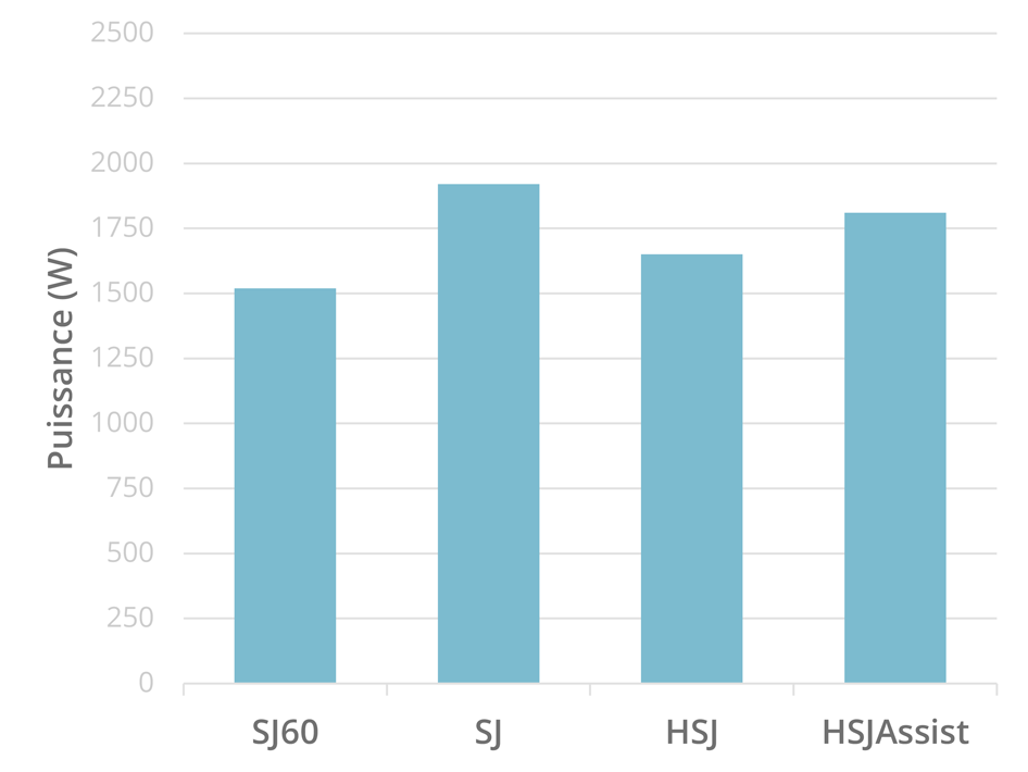 Les résultats sont présentés dans les figures 2,3 et 4. Au niveau de la force, chaque condition est significativement différente (à l’exception des deux sauts horizontaux). Au niveau de la vitesse, chaque condition est significativement différente. Et au niveau de la puissance, des différences significatives existent entre SJ et SJ60, SJ60 et HSJAssist et entre SJ et HSJ. Ces résultats sont similaires aux données obtenues lors d’études avec assistance élastique lors de sauts verticaux avec 15-20% de la masse corporelle (HSJ) et 30% de la masse corporelle (HSJAssist).