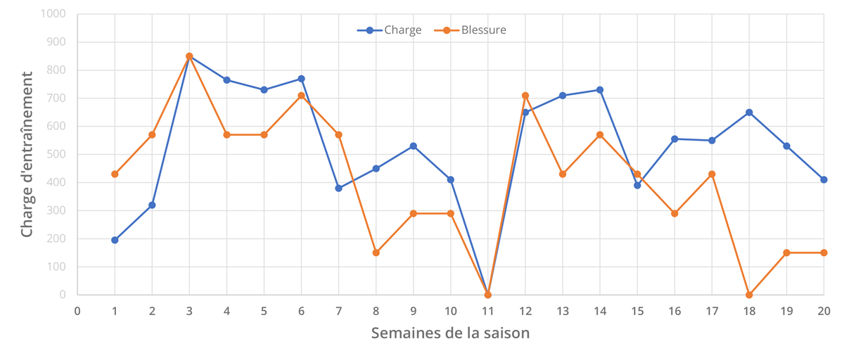 Outre l’éventuel impact au niveau des patrons moteurs, l’entrainement spécifique présente un second inconvénient à ne pas négliger, qui est le risque de dépasser les capacités de l’athlète à absorber une charge d’entrainement propre à un système physiologique. Ce dépassement des capacités de résilience peut se traduire dans le meilleur des cas par une absence de gain de performance et par une fatigue passagère. Dans un scénario plus sombre, et si ce stimulus inadéquat se répète de manière récurrente, on confronte l’athlète au risque plus grave de surentrainement. Mais alors en quoi le fait de confronter un athlète à un stimulus spécifique est t-il différent d’une confrontation à un stimulus aspécifique ? Pour comprendre cela, il faut considérer que les sessions de préparation physique ne font pas partie de l’activité première de l’athlète. La plupart du temps, les athlètes sont déjà confrontés aux exercices les plus spécifiques qu’ils soient, à savoir les contraintes et gestuelles de leur discipline. La fatigue étant un facteur global, le corps absorbe donc ces deux charges d’entrainement sans faire de distinctions : il n’existe pas de “jauges” de fatigue distinctes entre les sessions d’entrainement techniques et les sessions de préparation physique. Travailler une qualité physique de manière détournée, sans impliquer directement les systèmes spécifiques, devient alors parfois une nécessité plus qu’un choix de programmation. Et ce tout particulièrement durant les phases précompétitives, où la charge des entrainements techniques souvent est très élevée (Fig. 2). La bonne approche du développement de l’athlète est donc peut être de se concentrer un peu moins sur la spécificité de sa discipline, et plus sur des axes de développement connexes, utiles à la performance.